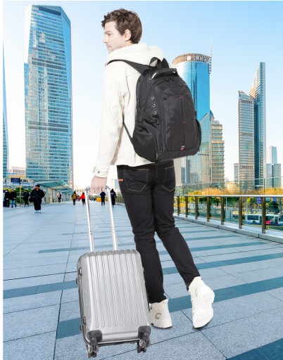 Super pojemny plecak na laptopa do rozmiaru 17,3 marki Bange. Bardzo dobrze uszyty i świetnie zaprojektowany plecak na laptopa wykonany z wodoodpornego materiału. Posiada doskonale zorganizowane kieszenie i przegrody, w których zmieścisz wszystkie potrzebne Ci rzeczy w zależności od sytuacji. Możesz zapakować do niego ubrania na 6-dniową podróż lub 10 książek i laptopa w rozmiarze do 17,3. Plecak posiada dwie komory oraz mnóstwo kieszeni. Komora znajdująca się z tyłu przeznaczona jest na multimedia i otwierana jak walizka dzięki czemu masz łatwy dostęp do jej całej zawartości. Przednia komora jest pojemna, więc zmieścisz w niej sporo rzeczy. Z przodu plecaka znajdują się trzy kieszenie na podręczne rzeczy oraz duża kieszeń z przegródkami na drobiazgi. Po bokach plecaka znajdują się pojemne kieszenie zapinane na zamek, które posiadają na zewnątrz elastyczne kieszonki na napój lub parasolkę. Plecak wyposażony jest dodatkowo w zewnętrzne gniazdo USB, dzięki czemu nie ma konieczności wyciągania power banka z plecaka, aby naładować telefon lub inne przenośne urządzenie, gniazdo miniUSB, dzięki któremu naładujesz powerbank schowany wewnątrz plecaka, oraz zewnętrzne gniazdo słuchawkowe, dzięki któremu posłuchasz muzyki bez konieczności wyciągania odtwarzacza z plecaka. Tył plecaka wyłożony jest grubą pianką o ergonomicznym kształcie, dzięki czemu zawartość plecaka jest bardzo dobrze chroniona przed uderzeniami, a plecak wygodnie układa się na plecach. Umieszczono tutaj również solidny pas, dzięki któremu można stabilnie umieścić plecak na rączce torby lotniczej, oraz małą kieszonkę na portfel lub telefon, która ochroni Twoje najcenniejsze rzeczy przed kradzieżą. Szelki plecaka wykonane są solidnie i wyłożone są miękkimi gąbkami, aby plecak wygodnie układał się na ramionach. Na jednej szelce znajduje się kieszonka dedykowana na słuchawki, a na drugiej na okulary. Ponadto plecak posiada bardzo solidną rączkę wzmocnioną metalową linką oraz specjalnym gumowym ochraniaczem, aby ciężki plecak można było wygodnie przenieść w ręce bez obawy o urwanie się uchwytu.