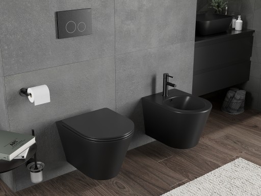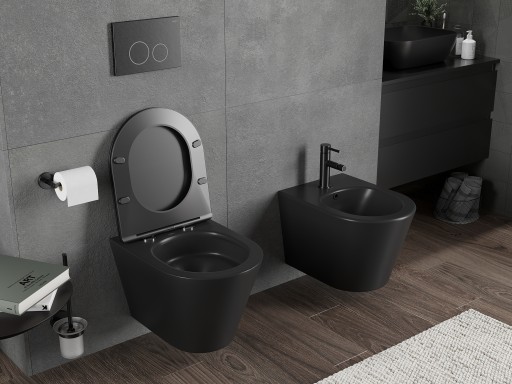 Mexen Rico miska wc Rimless Tornado z deską wolnoopadającą slim duroplast, czarny mat
