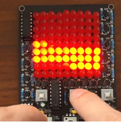 Układ ten ma matrycę punktową LED 9X9 umożliwia wyświetlanie różnych grafiki poprzez regulację dwóch potencjometrów. Grafika może poruszać się szybko lub powoli. Efekt wizualny polega na tym, że diody LED ścigają się nawzajem, więc nazywa się światłem śledzącym LED.