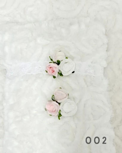 Ręcznie wykonaną opaskę uszyliśmy z najwyższej jakości elastycznej koronki, która jest miękka i przyjemna w dotyku. Dzięki swym właściwościom, opaska doskonale dopasowuje się do główki dziecka, zapewniając komfort noszenia. Ozdobiona białymi i różowymi różyczkami z dodatkami, dodaje każdej stylizacji dziewczęcego uroku a także podkreśla elegancję stroju.