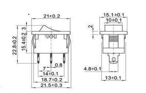 Przełącznik kołyskowy KCD1 to przełącznik ON/OFF. Wyłącznik posiada wyprowadzenia 2 PIN do zalutowania przewodów bądź nasunięcia konektora elektrycznego 4.8mm.