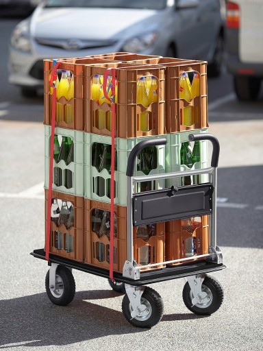 - Uniwersalne zastosowanie: do bezpiecznego i łatwego transportu materiałów i narzędzi, np. w warsztacie i garażu, do transportu ciężkich ładunków, takich jak skrzynki z napojami i duże paczki, nadaje się do przeprowadzek