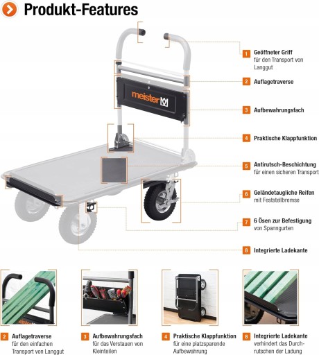 Wózek platformowy Meister Cross Over do 300 kg hamulec OPIS