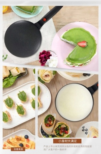 Łatwy w użyciu i szybki w gotowaniu, idealny do robienia cienkich naleśników bez ryzyka ich przypalenia. Łatwe do czyszczenia.