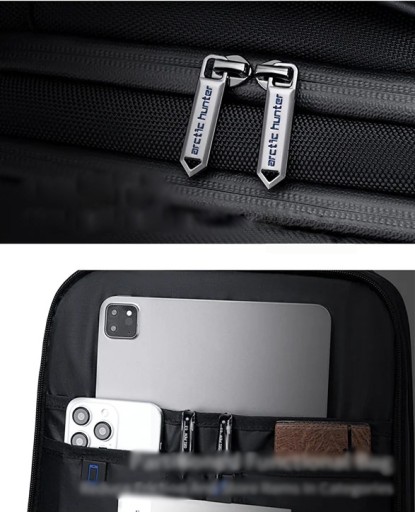 Dwukomorowy plecak marki Arctic Hunter o symbolu B00681 wykonano z trwałego i odpornego na deszcz materiału – nylonu. Z przodu plecaka znajduje się komora z organizerem oraz mała kieszonka na podręczne rzeczy. W drugiej komorze znajdują się dedykowana kieszeń na laptop w rozmiarze do 15,6" oraz kieszeń na tablet w rozmiarze do 10 posiadające zabezpieczenie w postaci elastycznego paska. Wszystkie komory plecaka i przednia kieszonka posiadają wodoodporny zamek. Zarówno szelki, jak i tył plecaka wyłożone są sprężystymi gąbkami zwiększającymi komfort w trakcie noszenia. Na jednej z szelek znajduje się zaczep np. na okulary przeciwsłoneczne. Na plecach pod szelkami umieszczono pas umożliwiający założenie plecaka na rączkę torby podróżnej. Pod pasem schowano bezpieczną kieszeń na portfel lub telefon zapinaną na zamek. Plecak posiada również dwa uchwyty do przenoszenia plecaka w ręce lub zawieszenia go na wieszaku. Arctic Hunter B00681 to nieduży, zgrabny i funkcjonalny plecak o minimalistycznym designie. Z pewnością doskonale sprawdzi się jako plecak na co dzień, do pracy lub do szkoły.