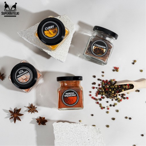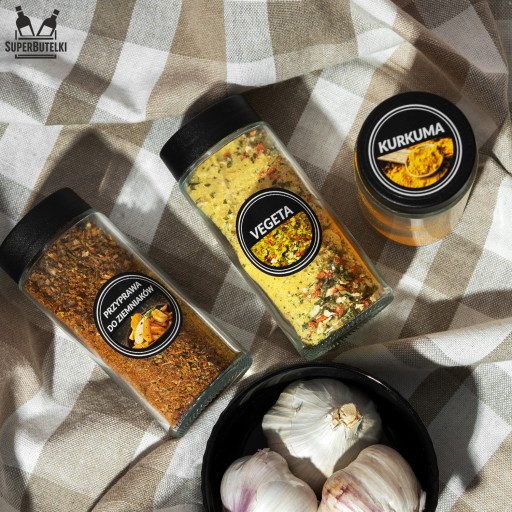 ✔️ Praktyczny design – Każda naklejka posiada eleganckie czarne tło, wyraźny biały napis oraz realistyczne zdjęcie przyprawy, co nie tylko ułatwia identyfikację, ale także nadaje pojemnikom nowoczesny wygląd.