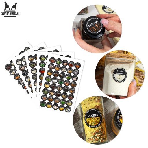 200x ETYKIETY na PRZYPRAWY SŁOIKI SŁOICZKI WIECZKA NAKLEJKI SAMOPRZYLEPNE