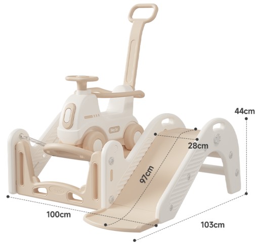 Konik na biegunach + bujak + pchacz + zjeżdżalnia 4w1