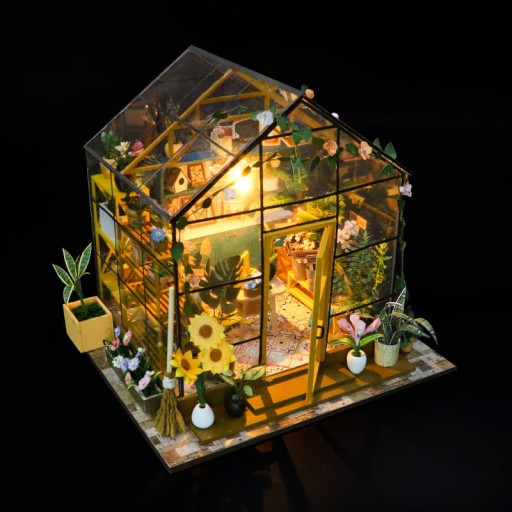 Miniaturowy domek DIY Kolorowa szklarnia Ogród Słońce Kwiaty