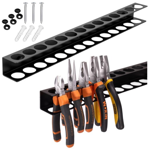 ➡️Kompaktowa konstrukcja – Dzięki wymiarom 40 cm długości i wąskiemu profilowi, wieszak nie zajmuje dużo miejsca, a jednocześnie pozwala na przechowywanie wielu narzędzi.