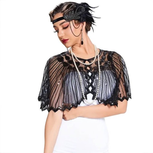 BOLERKO CZARNE WIECZOROWE cekiny BAL LATA 20 KOSTIUM