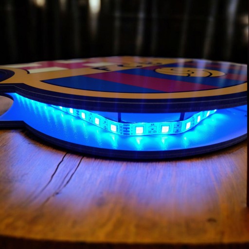 FC BARCELONA Lampka Nocna LED Obraz Drewniany Herb Piłkarski Prezent RGB