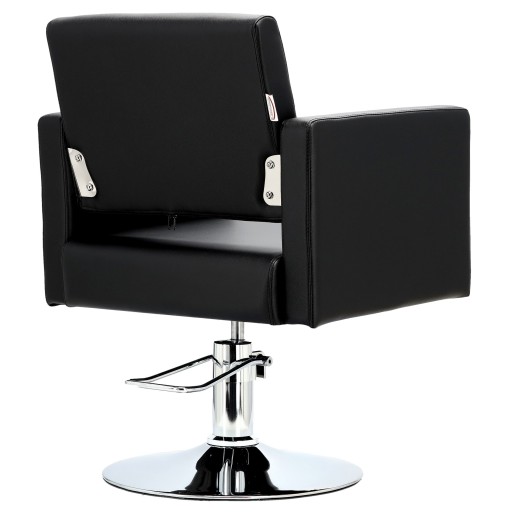 Fotel charakteryzuje się eleganckim i ergonomicznym designem, który pozwala na wygodną pracę fryzjera oraz relaks klientów.