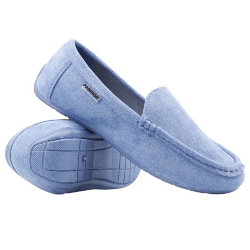 MOKASYNY DAMSKIE ZAMSZOWE PÓŁBUTY NIEBIESKIE PŁASKIE WKŁ. EKOSKÓRA WYGODNE