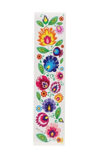 Motywy haftu łowickiego zdobią obie strony zakładki, dzięki czemu prezentuje się pięknie bez względu na to, jak zostanie umieszczona w książce.