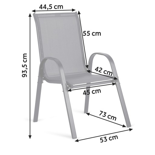 ⭐ Krzesła można sztaplować — układać jedno na drugim.