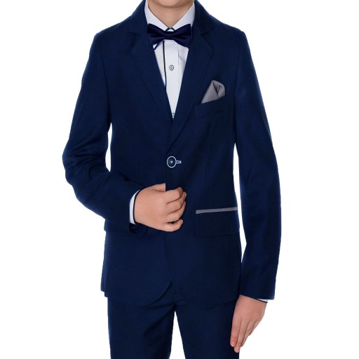 Garnitur dla chłopca od Lorento, dziecięcy, w kolorze granatowym, klasyczny i elegancki, bardzo twarzowy, doskonały do Pierwszej Komunii jaki i inne uroczystości szkolne lub rodzinne, Lorento to zespół który zna się na garniturach, szyjemy od wielu lat, jeśli chodzi o elegancką odzież to jesteś w dobrym miejscu, zapraszamy na nasze aukcje po koszule i dodatki.