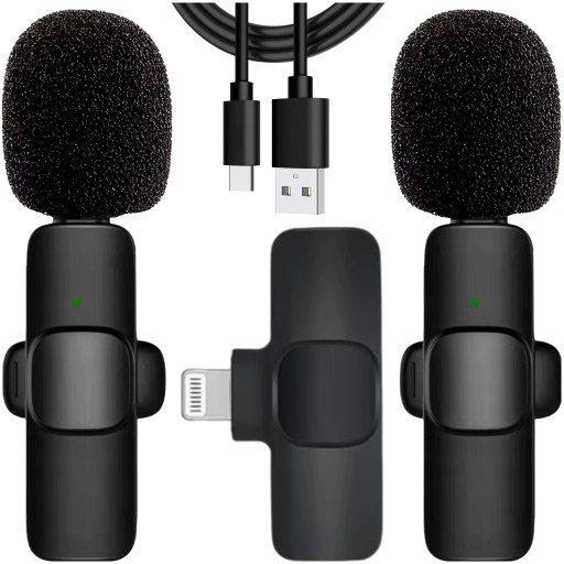 ▶️ 2x mikrofon krawatowy bezprzewodowy Alogy Lightning do Apple iPhone iPad małe mikrofony zestaw dwóch mikrofonów