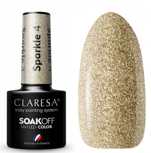 CLARESA lakier hybrydowy SPARKLE złoty z brokatem BŁYSZCZĄCY