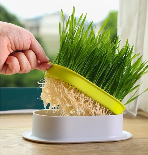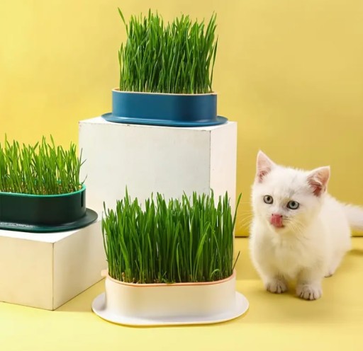 ✅Wygodny pojemnik na trawę dla kota może być używany w domu, biurze, użyteczny design, prosty w uprawie hydroponicznej trawy dla kota.