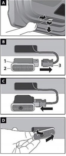 A. Wyciągamy starą lampkę podważając i wciskając śrubokrętem plastikowy element przytrzymujący lampkę w otworze. Lampka sama się powinna wypiąć z mocowania.