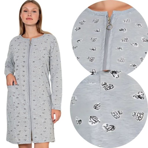 SZLAFROK DAMSKI BAWEŁNIANY SUWAKI PRZED KOLANA PODOMKA RĘKAW 3/4 WYGODNE