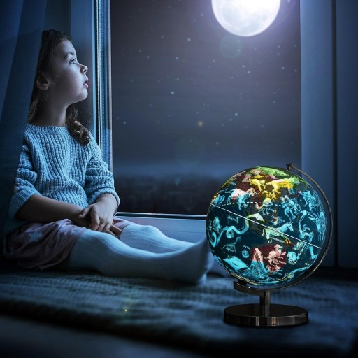 🌏W dzień stanowi wspaniałe narzędzie do nauki, dzięki któremu możesz odkrywać ziemię, w której żyjemy. W nocy rozświetla się delikatnym blaskiem, aby ulepszyć sypialnię Twojego dziecka i pielęgnować słodkie sny.
