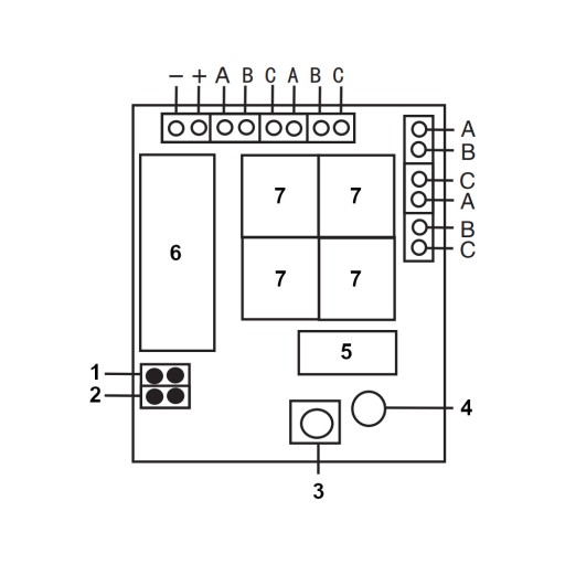 - Tryb - mieszany- przekaźniki A-B działają w trybie włącz/wyłącz, z kolei przekaźniki C-D działają w trybie chwilowym