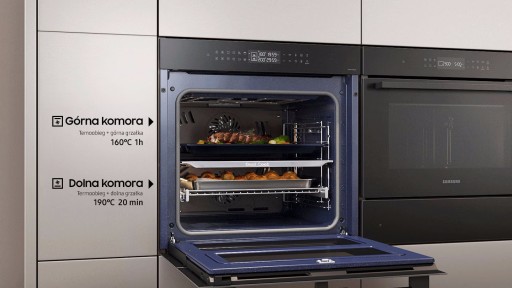 Dzięki wyjątkowemu separatorowi Dual Cook można podzielić przestrzeń piekarnika na dwie komory i w tym samym czasie piec dwie potrawy, w różnych trybach i temperaturach, bez przenikania się zapachów. Można również oszczędzić energię i czas piekąc tylko w jednej komorze.