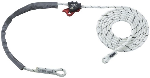Rope adjuster wykonany jest z 12,5 mm liny statycznej, po której przesuwa się przyrząd zaciskowy pozwalający na regulację długości lonży do 5 metrów. Czerwona przesuwna taśma chroni linę przed przetarciem.