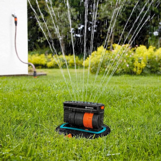 Zainstalowany pod ziemią zraszacz wynurzalny wahadłowy OS 140 marki GARDENA jest idealny do zraszania prostokątnych powierzchni od 2 do 140 m². Może zostać przy pomocy rury montażowej podłączony do podziemnego systemu nawadniania Sprinklersystem i współpracować ze zraszaczami wynurzalnymi turbinowymi T 100, T 200 bądź T 380. Szerokość zraszania można regulować w zakresie od 1 do 9,5 m, a zasięg wyrzutu od 2 do 15 m. Regulacja przepływu wody jest płynna. Dzięki możliwości regulacji można nawadniać małe i wąskie powierzchnie ogrodu. Głowica z 16 dyszami zraszającymi z elastycznego tworzywa sztucznego zapewnia równomierne nawadnianie, a wbudowany filtr z siatką o drobnych oczkach zapewnia bezawaryjne użytkowanie. Wbudowany do instalacji podziemnej zawór odwadniający (art. nr 2760) zapobiega uszkodzeniu systemu nawadniania w wyniku działania mrozu. Zraszacz wynurzalny wahadłowy OS 140 ma gwint wewnętrzny 3/4“.