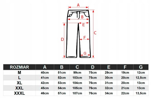 WYMIARY SPODNI:
