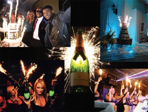 Długość fontanny 26 cm. Najczęściej umieszczane są na najwyższych częściach tortu weselnego - po ich zapaleniu snopy iskier, szczególnie przy zgaszonym lub przyciemnionym świetle, dają wspaniały efekt. Wylatujące snopy iskier są w srebrno złotym kolorze.