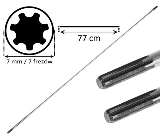 WAŁEK NAPĘDOWY OŚ DO KOSY SPALINOWEJ WAŁ 7MM 7 FREZÓW KRÓTKI 77 CM