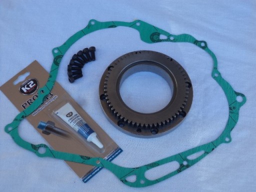 W ZESTAWIE KOMPLETNE WOLNE KOŁO , USZCZELKA POD DEKIEL ALTERNATORA, ŚRUBY ORAZ KLEJ DO ŚRUB
