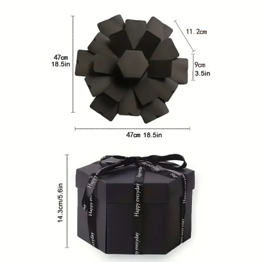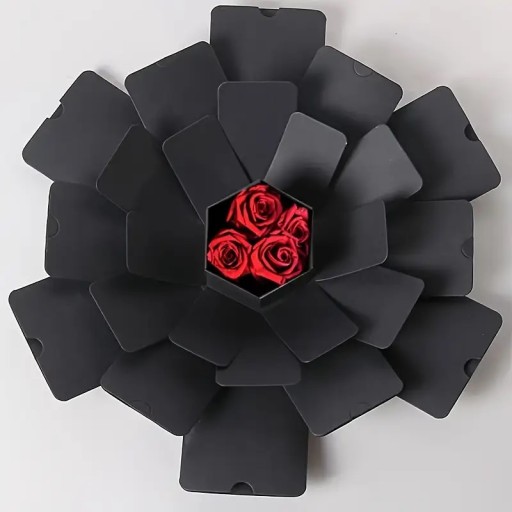 - ★. Kreatywne pudełko typu "zrób to sam" – pudełko eksplozyjne wygląda jak zwykłe czarne pudełko, ale po otwarciu znajdziesz wiele niespodzianek. Pudełko prezentowe ma 6 stron, 4 warstwy i 12 kieszeni. Po zamknięciu pudełko wygląda jak pudełko prezentowe. Po otwarciu kwitnie warstwa po warstwie jak kwiat.