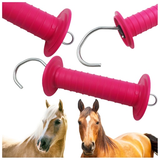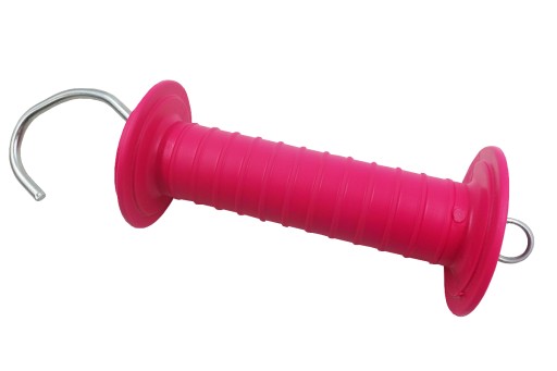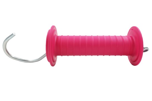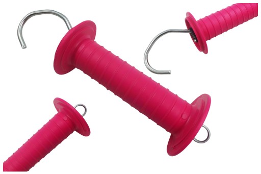 - Trwały, izolujący uchwyt do bram przepędowych, w kolorze różowym.