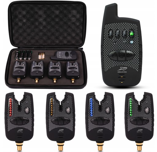 Znany na rynku i niezawodny zestaw sygnalizatorów brań. Profesjonalny i dobrze wykonany komplet który będzie długo służyć. Zawiera cztery sygnalizatory o różnych kolorach i centralkę. Oświetlenie wykonane w technologii LED. Odporny na deszcz i zapakowany w eleganckie etui.