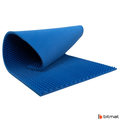 Szukasz skutecznego sposobu na poprawę akustyki w pomieszczeniu? Nasza niebieska pianka akustyczna Bitmat w kształcie fali to rozwiązanie, które pozwoli Ci zniwelować echo, skrócić czas pogłosu i podnieść komfort dźwiękowy wnętrza.