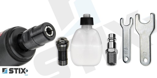 Szlifierka pneumatyczna prosta STT-R11 trzpieniowa z akcesoriami | Stix Tool
