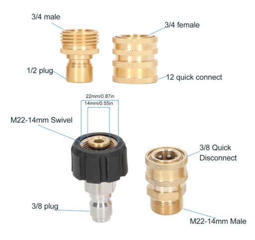 ✴️Przekształca złącze gwintowane M22 w szybkozłącze 3/8", łatwe do podłączenia i rozłączenia.
