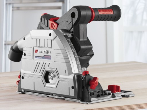 Akcesoria: 1 brzeszczot uniwersalny Ø 140 mm z 42 zębami (wstępnie zmontowany), 1 ogranicznik równoległy, 2-częściowa prowadnica z elementem łączącym, 2 klucz imbusowy
