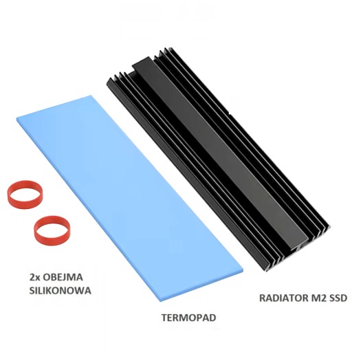 - Jeden termopad o wysokiej przewodności cieplnej, który zapewnia doskonały kontakt między dyskiem SSD a radiatorem, maksymalizując efektywność chłodzenia.