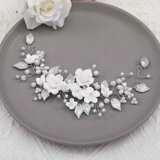 Ręcznie wykonany w wysokiej jakości kwiatowy stroik wianek do włosów jest wykwintnym, przyciągającym wzrok dodatkiem wyjątkowej kreacji na komunię, dla panny młodej, dla druhen.