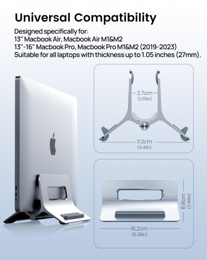 SODI pionowy stojak na laptopa, aluminiowy pionowy stojak na laptopa, stojak na laptopa dla MacBook Air, MacBook Pro, iPad, iPhone