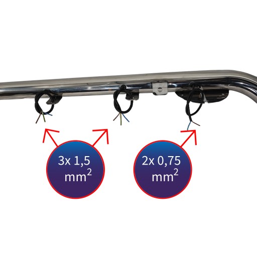 - Prefabrykowana wiązka przewodów do świateł drogowych i lamp ostrzegawczych, całość ukryta w orurowaniu.