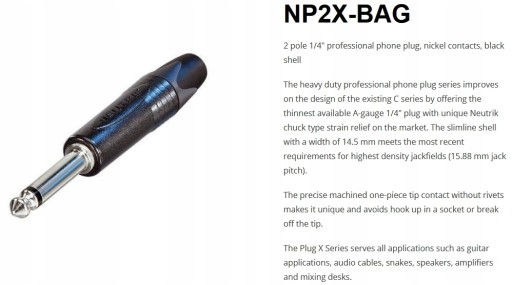 Neutrik NP2X-BAG - złącze instrumentalne JACK MONO - czarne (męskie)