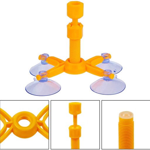 8️⃣Po całkowitym usunięciu powietrza z naprawianego ubytku, przekręć komorę podciśnieniową pół obrotu w lewo (w kierunku przeciwnym do ruchu wskazówek zegara). Zdejmij cały zestaw, łącznie z bazą, podważając przyssawki na jej nogach. Delikatnie wytrzyj nadmiar preparatu z szyby.