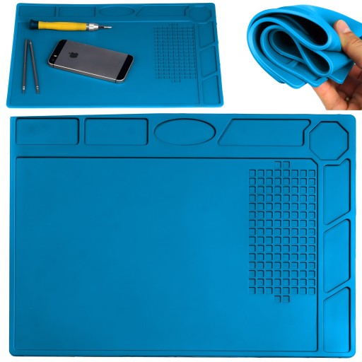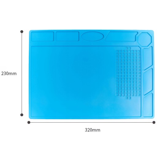 ✍️ Mata silikonowa do lutowania ✔️ Materiał: silikon organiczny przyjazny środowisku ☀️ Odporna na wysokie temperatury ✏️ Organizery na śrubki montażowe ✉️ Elastyczna ♥️ Izolacyjna ♠️ Nieprzylepna ♣️ Antypoślizgowa ✏️ Wymiary: 320mm x 230 mm✔️ Grubość: około 5mm✔️