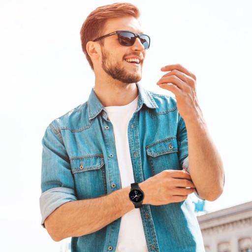 ♠️ Ten elegancki, okrągły smartwatch w kolorze czarnym nie tylko wyróżnia się swoją estetyką, ale również doskonale komponuje się z różnorodnymi stylami ubierania. Dzięki temu jest to akcesorium, które możemy nosić na co dzień, ale także bez obaw wybierać je na bardziej formalne okazje.